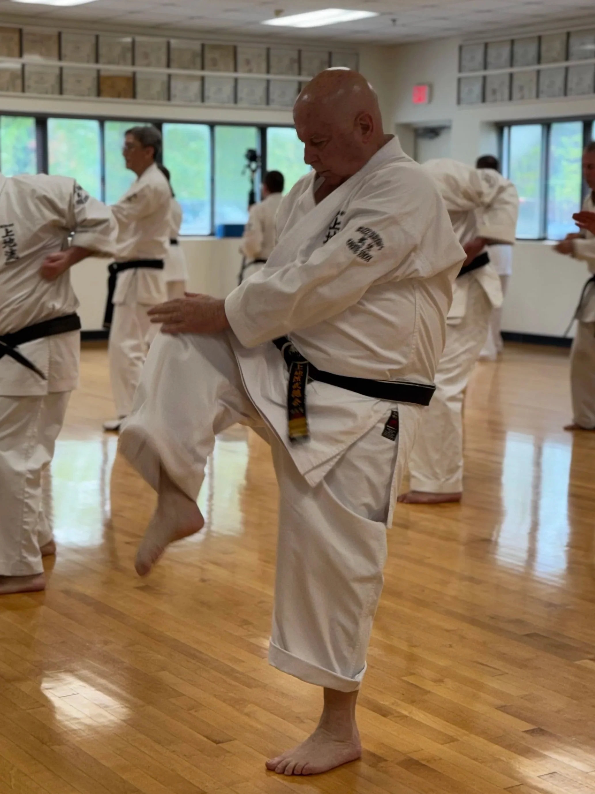 “I began studying Uechi-Ryu in 1975. In 1993 I was given the privilege of teaching at the Atkinson Dojo by Sensei Durkin. When teaching I focus on self-defense, endurance and stretching, aerobic bordering on anaerobic, and fighting for air. (My opening statement to the class, "It is my job to leave you behind, it is your job not to let me.") How to survive under extreme conditions. As a professional I worked on the railroad as a Locomotive Engineer for over 40 years. A family man married for 55 years, two sons both Blackbelts and two wonderful grandchildren. I enjoy playing tenor saxophone, bicycling, gardening and reading. At 74 years old, my two most important groups of people in my life are (in this order) my family and my Uechi Family. My best friend is my wife Debbie.